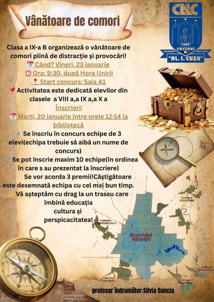 De 24 ianuarie, Colegiul Național „Al. I. Cuza” din Focșani organizează o serie de activități dedicate sărbătorii naționale a Unirii. Potrivit %source%, profesori și elevi se implică anual în evenimente care marchează această zi importantă, iar programul de anul acesta include o „vânătoare de comori” și un meci de debate la bibliotecă, menite să ofere o experiență educativă și atractivă.