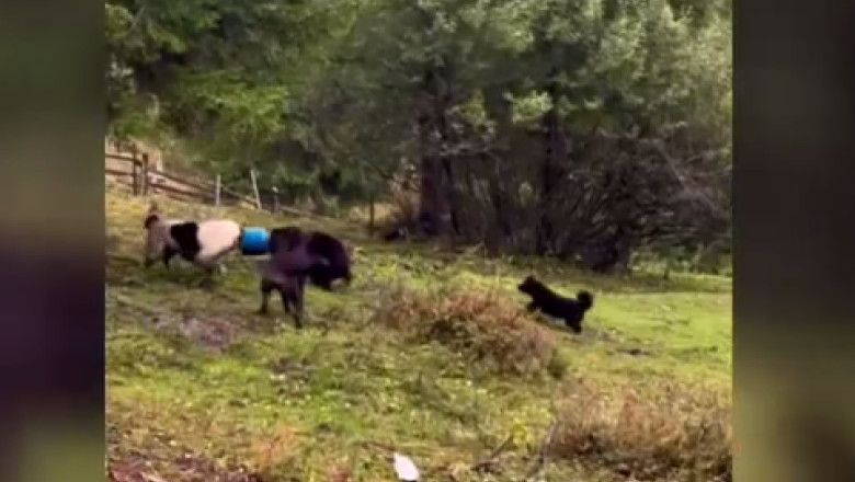 În munții Apuseni, un urs tânăr a fost găsit blocat cu un butoi de plastic pe cap, în timpul căutării hranei. Localnicii care au observat animalul au solicitat ajutorul pădurarilor și al unui medic veterinar pentru a interveni.